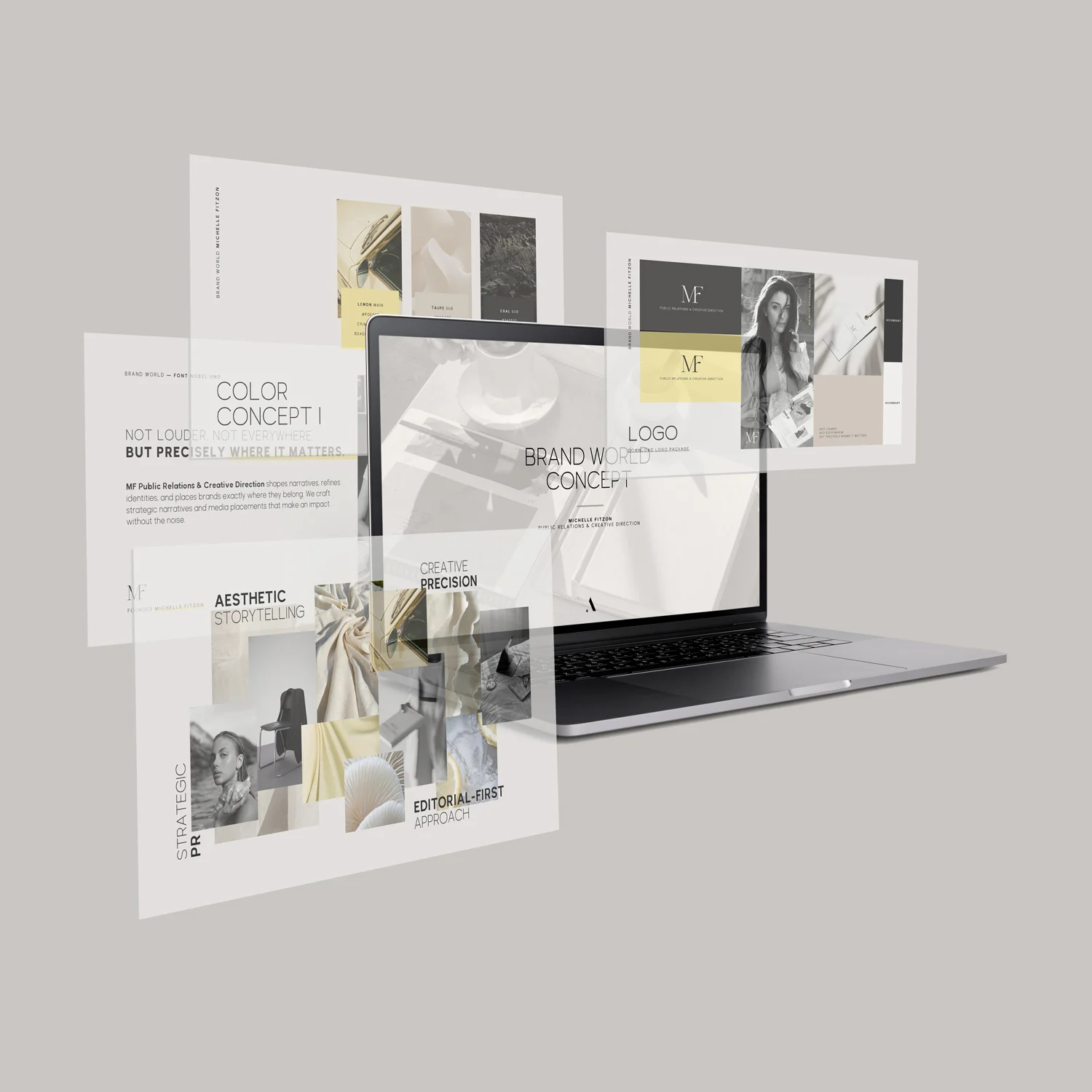 The result is a brand world that feels elegant, precise, and editorial — just like Michelle’s work: not louder, not everywhere, but precisely where it matters.